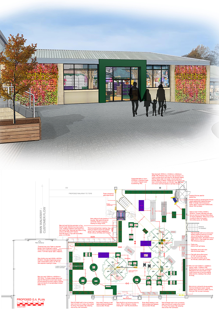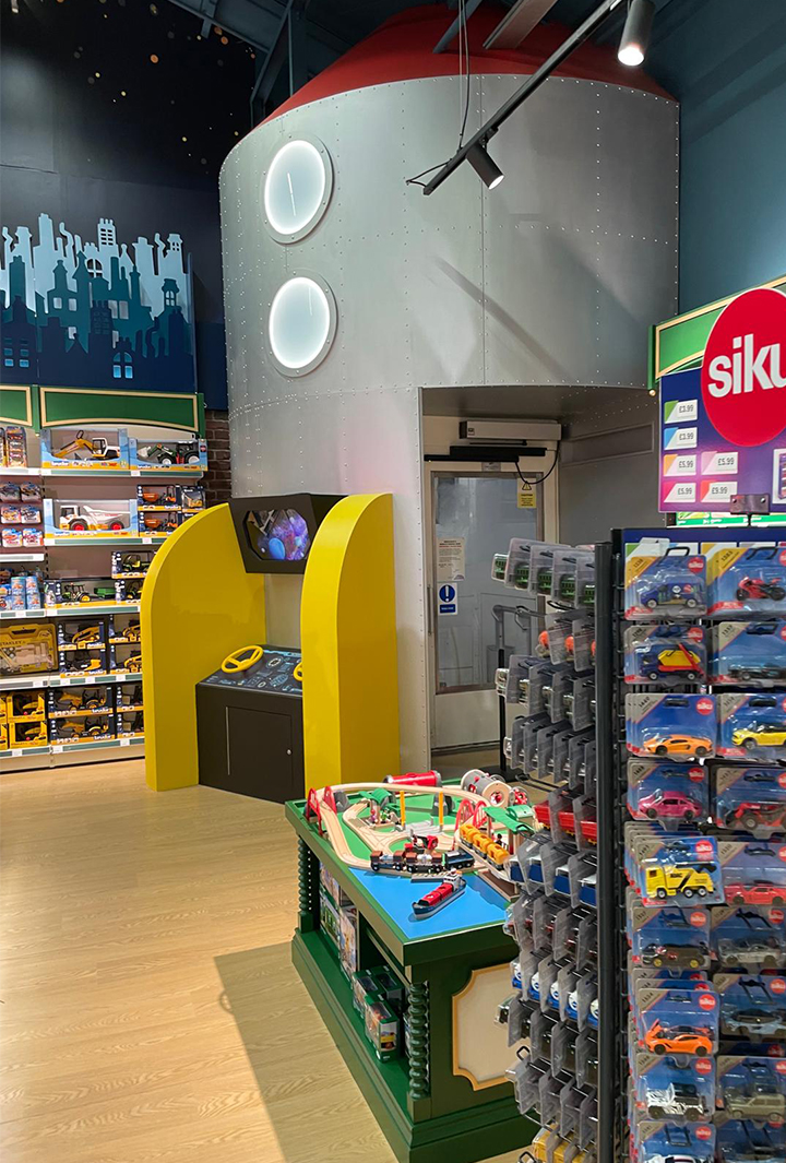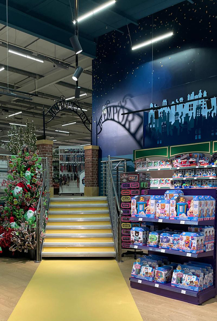 A new 344 m2 toy store for the garden centre that blends a traditional toy shop feel with layers of theatre and interactive features, based on childhood nostalgia and fairytales. Designed to create a memorable family experience and a more engaging retail environment.